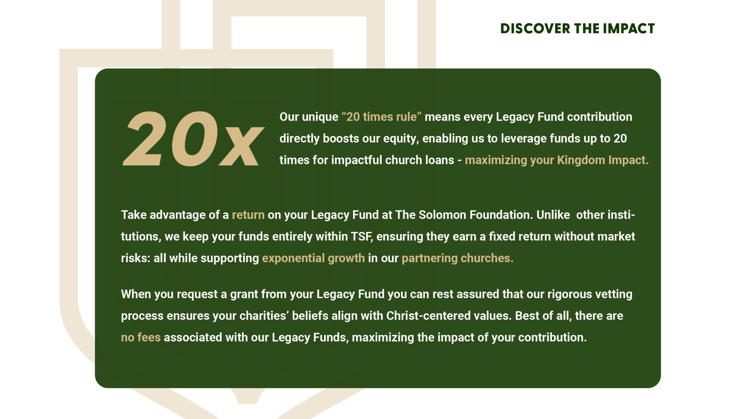 If you’re ready to set up your Legacy Fund with The Solomon Foundation, or if you have any questions, please contact us to get started!